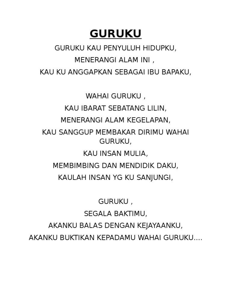Untuk manusia sebelum jadi dewasa. Guru pendidik mulia bukan untuk dipuja Hanya untuk mu guru dialah pemberi paling setia tiap akar ilmu miliknya pelita dan lampu segala. 814 views may 17, 2020 sempena pertandingan penulisan kreatif di kalangan guru peringkat sk kuang.